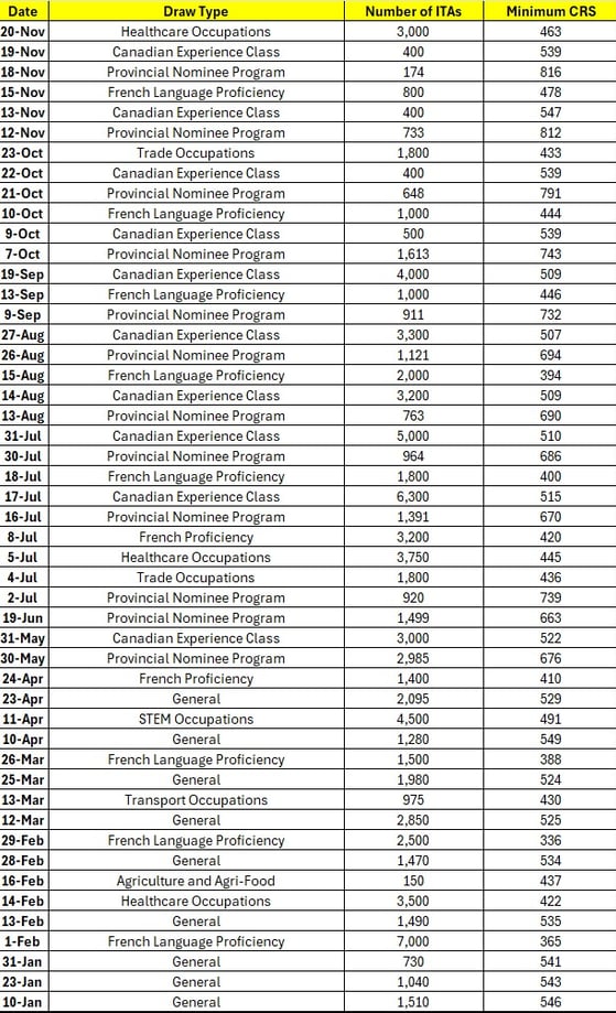 This draw is part of a busy week for Express Entry, following a Canadian Experience Class (CEC) draw on November 19 and a Provincial Nominee Program (PNP) draw on November 18.